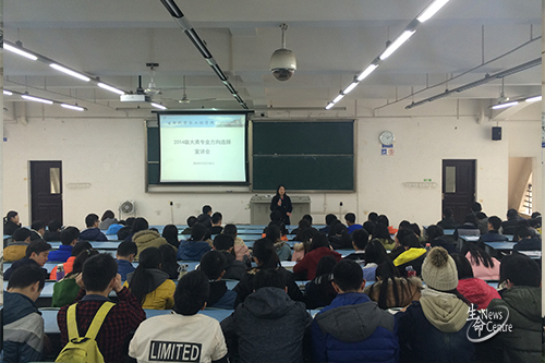 随后,李遂焰又向14级同学介绍大类专业方向选择细则,包括专业方向具体内容、专业申请时间安排以及专业方向对于今后发展的影响。她在讲说的最后表示,希望同学们慎重选择未来发展方向,能够在下一学期看到每位同学都展现出新的学习面貌、带动新的学习风气。