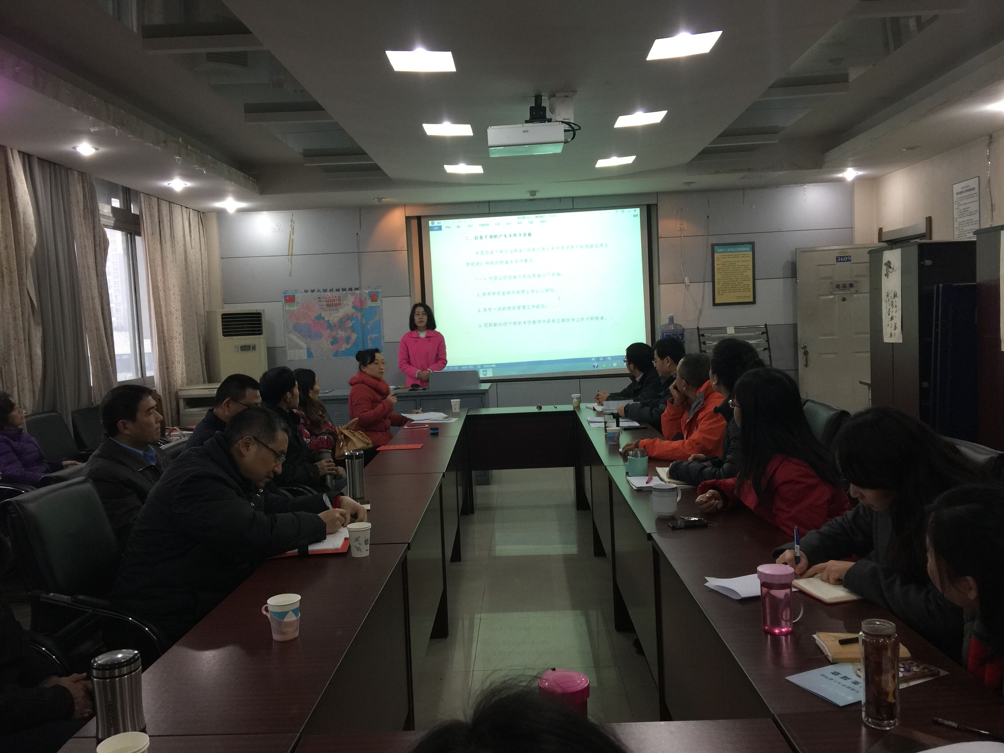 于1月5上午9:00,在3605会议室召开中层后备干部人选民主推荐会。学院党政班子成员、工会主席、办公室主任、党支部书记、各系室(中心)正副主任、分团委书记、全体正教授、党委委员、党代会代表及教代会代表参加了会议,会议由院党委书记李卓慧主持,校党委组织部燕莆龙同志出席了会议并全程监督了整个民主推荐过程。