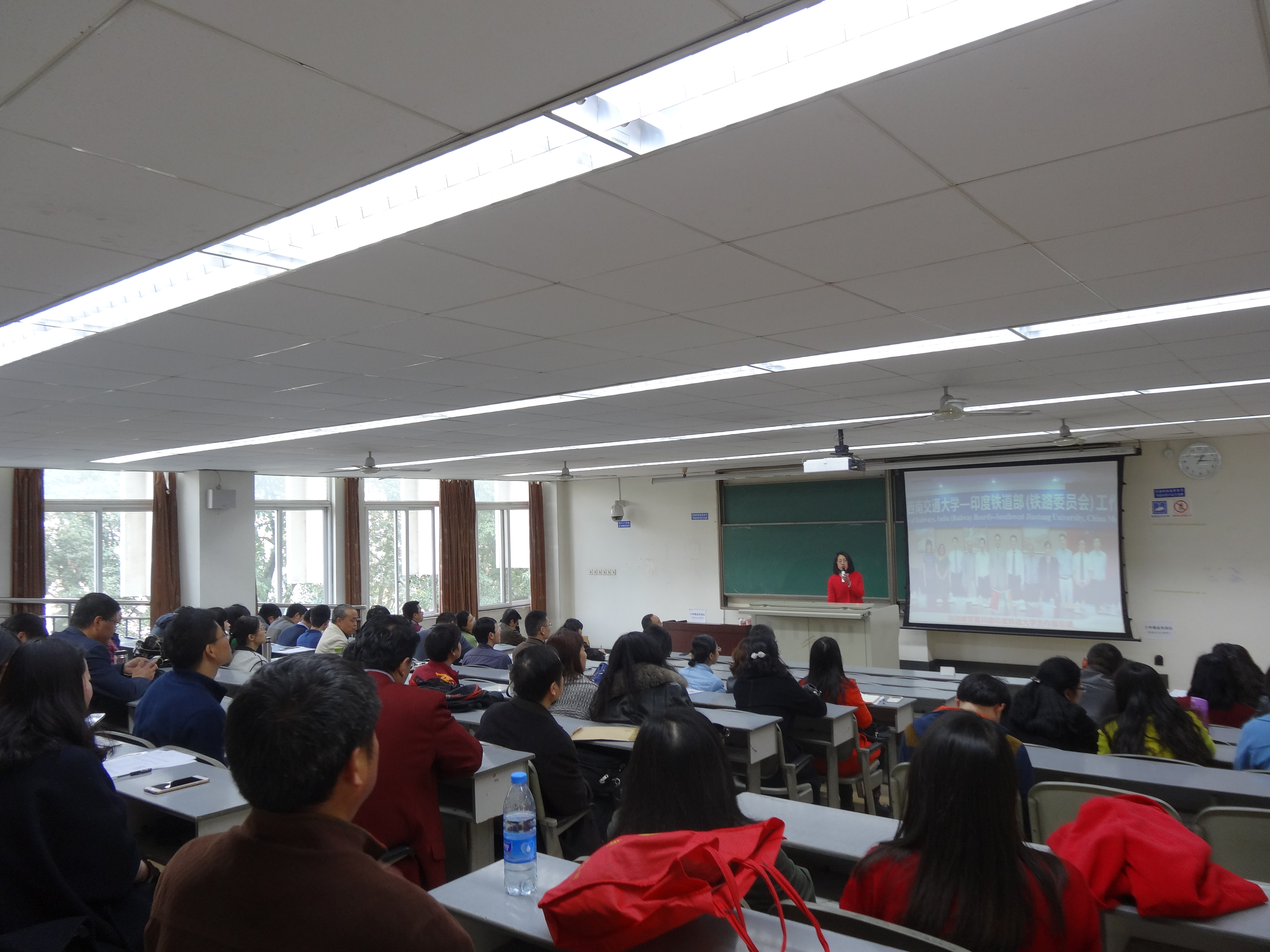 在九里校区4224召开全院教职工大会,传达学校2016年工作部署会精神,并部署学院年度重点工作。全院教职工出席了会议,会议由院党委书记李卓慧主持。