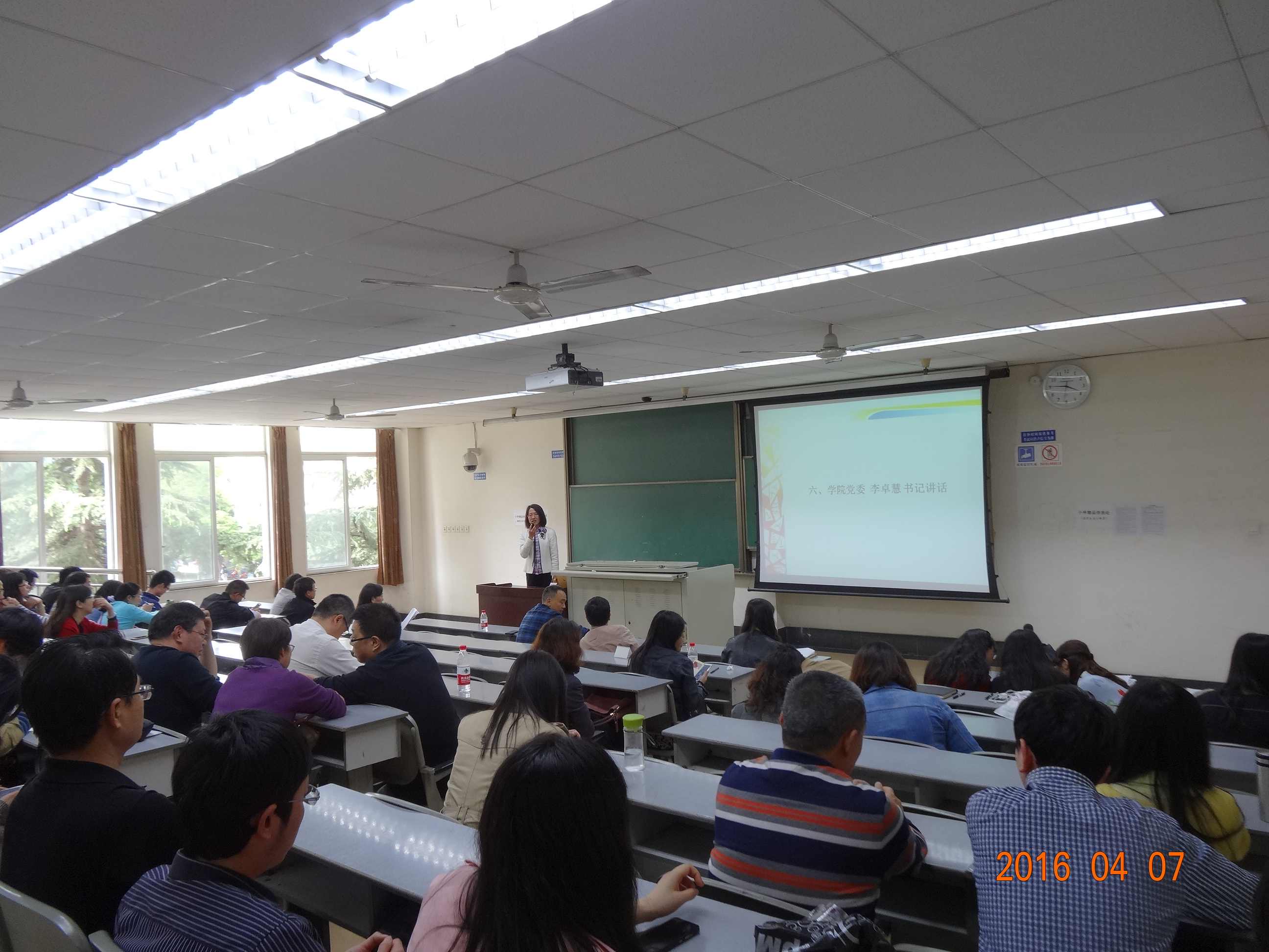 第二阶段学院教职工会议上,院长周先礼教授通报了4月5日学校国有资产清查工作培训会议内容,强调了本次国有资产清查的目的和意义,希望全院教师高度重视,并按照学院的部署做好相应的工作;团委副书记魏源成老师会上通报了学校2016年运动会工作部署和校工会 “健步走”活动参与方式。