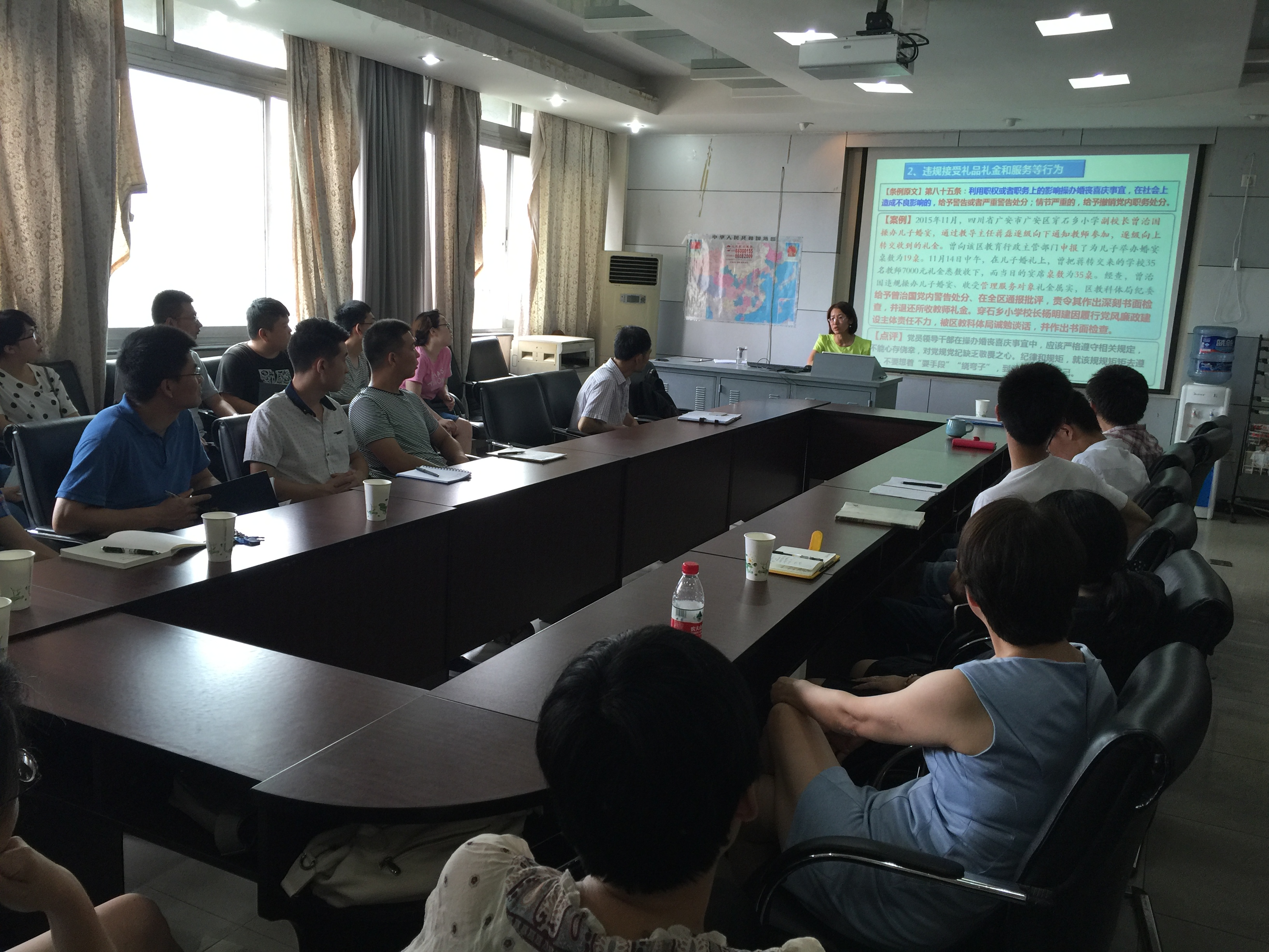 院党委李卓慧书记用1个半小时的时间为与会人员主讲了《学习党规党纪,明确道德“高线”,守住纪律“底线”》,