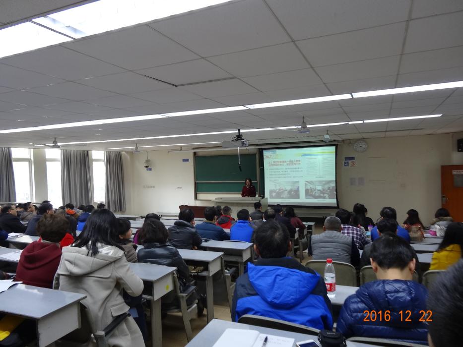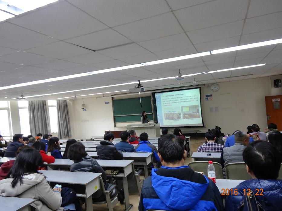 在九里校区4309召开2016年全院第六次教职工大会。会议分为三个阶段,由院党委书记李卓慧主持。