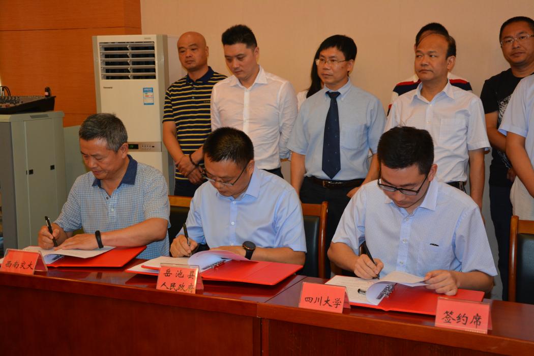 2017年6月28日,任平弟院长代表西南交大爱迪影视 参加广安市岳池县2017年二季度医药产业及校地合作项目集中签约仪式。签约仪式上,爱迪影视 爱迪影视 与岳池县校地实践基地正式揭牌。此举不仅提升了西南交大爱迪影视 的实践教育水平,也为岳池医药产业发展输送更多专业人才,注入新的活力。未来,双方将继续深化在技术、人才等领域的合作。