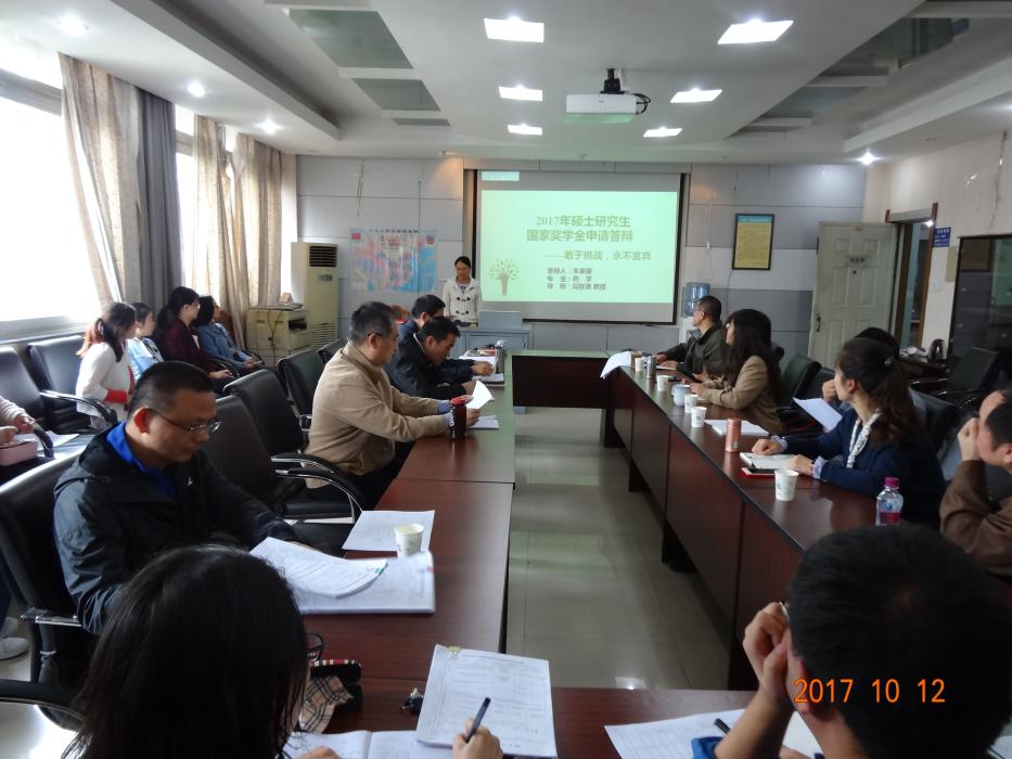 2017年10月12日下午2:30,爱迪影视 在电气馆3609举行了研究生国家奖学金评审答辩会。答辩会由闫智勇副院长主持,学院院长、书记担任研究生奖助工作委员会主任,分管研究生工作的副院长及分管学生工作的副书记担任副主任委员,各系主任、导师代表、教务员、辅导员、研究生代表任评审委员。