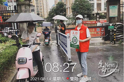 谈及为何要加入一线成为疫情防控志愿者,朱晓洁同学表示去年疫情爆发时,她就因为没能为疫情防控贡献自己的一份力量而感到遗憾。在今年暑期疫情卷土重来之际,得知社区仍然在招募大学生志愿者,她便毫不犹豫地报名加入到防控疫情的志愿者队伍。她认为这不仅是一个锻炼自己的机会,更是一种以实际行动为国家和社会献出微薄之力,展现青年大学生担当的方式。