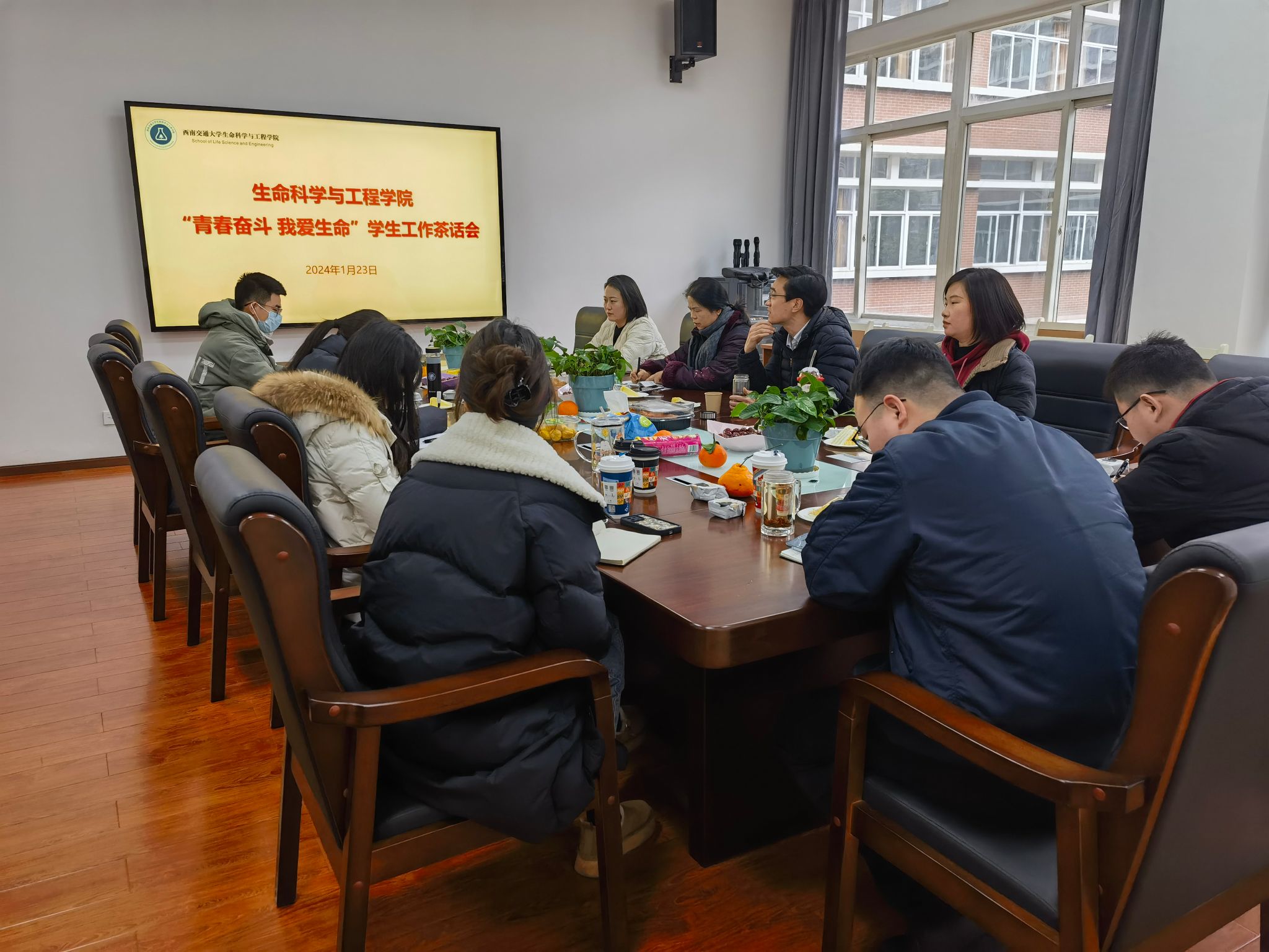 2024-01-241月23日下午,爱迪影视 党委以“青春奋斗·我爱生命”为主题,举办学生工作交流会。学院党委书记黄春蓉、党委副书记朱炜、团委书记高鹏、专...