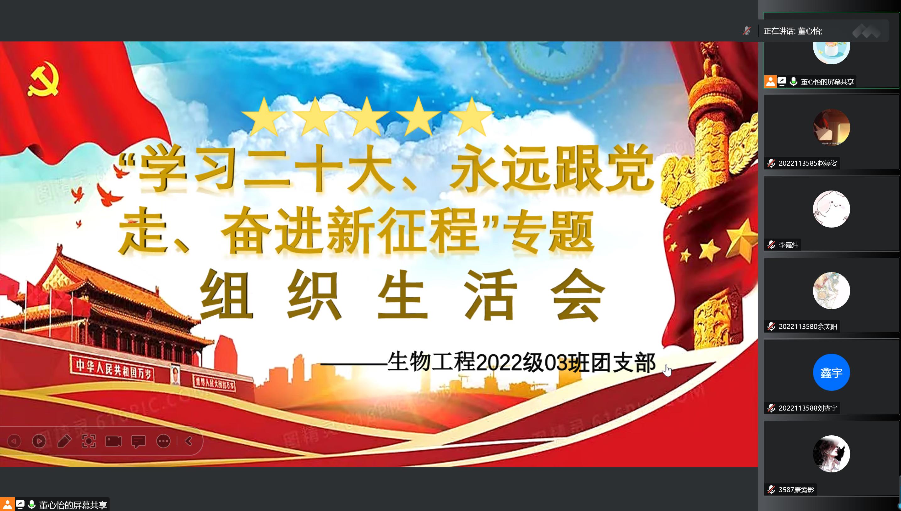 生物2022-03班顺利开展线上“学习二十大,永远跟党走,奋进新征程“专题组织生活会”